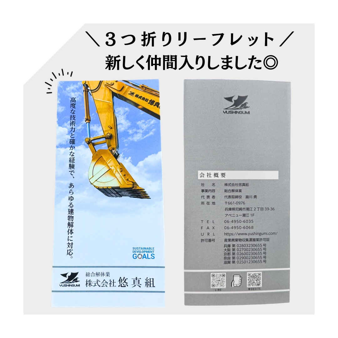 「解体工事に興味はあるけれど、いきなり電話するのは不安…」という方も、まずはこのリーフレットで悠真組の想いと取り組みを知っていただけたら嬉しいです😌💭